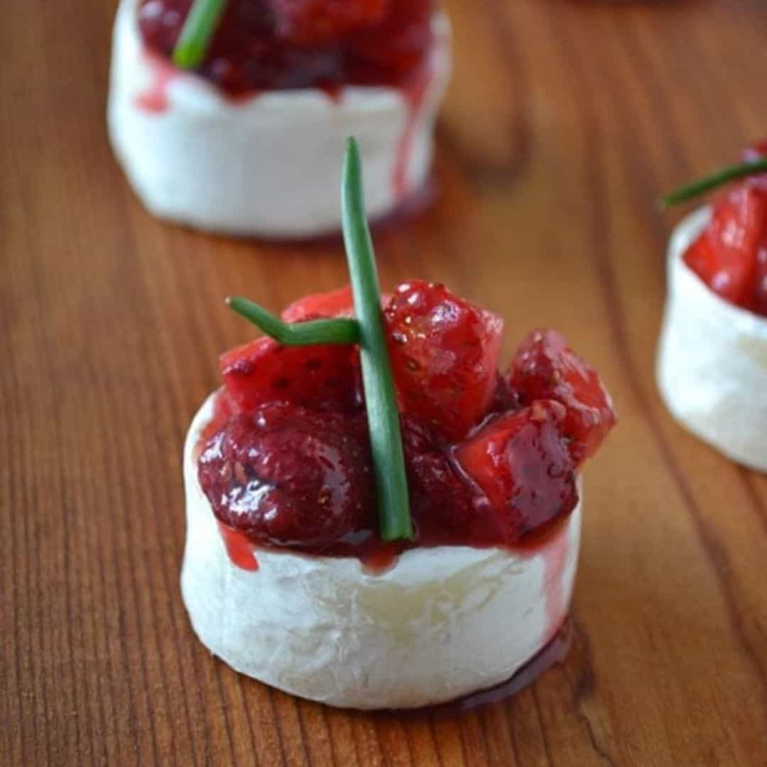 Add a generous spoonful of the berry mixture on to the top of each cheese bite.