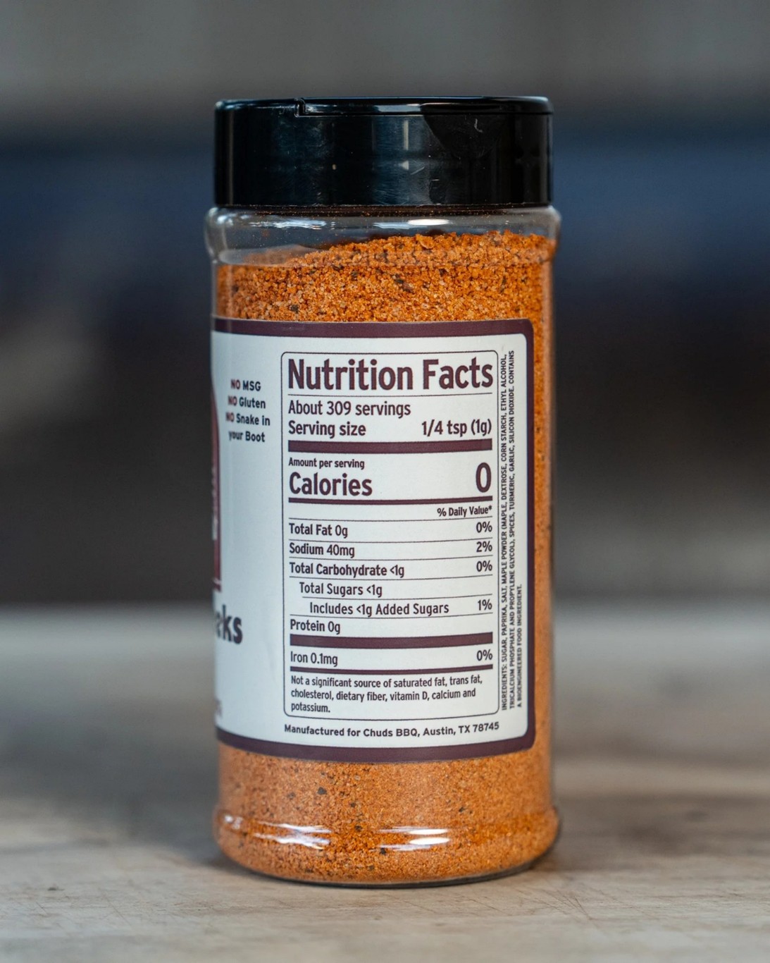 Sweet Cheeks combines a subtle maple sweetness with traditional Texas spices. Ideal for pork, ribs, or poultry, it adds a fragrant, slightly sweet finish to any smoked or grilled meat.