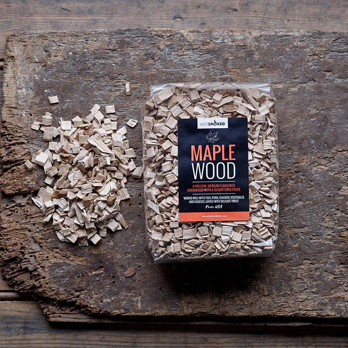 Maple produces a smooth, slightly sweet smoke with medium strength and depth. It pairs beautifully with pork and poultry, and its mellow flavour is equally at home with fish such as trout.
